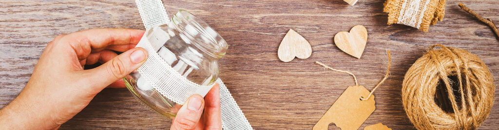 Potes de vidro que foram embalagens de alimentos podem ser ótimos para armazenar itens de higiene pessoal. Só é preciso de uma decoração para deixá-lo novo em folha! Confira o passo a passo para fazer um pote de vidro com contact: