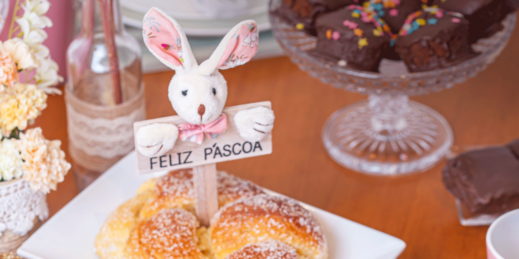 Elementos como coelhinhos, ovos coloridos e mini cenouras deixam a mesa temática e encantadora. Utilize pequenos detalhes para que a decoração não fique exagerada.