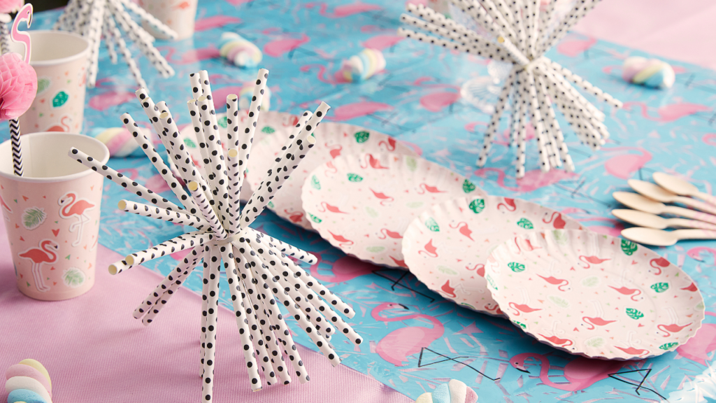 Os canudos de papel estampado, além de serem sustentáveis ajudam a compor uma decoração despojada e divertida.