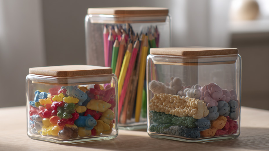 Organizar pode ser uma brincadeira! Use os potes de vidro transparentes para categorizar e guardar materiais de arte, brinquedos pequenos, peças de montar ou até mesmo coleções de pedras e folhas. Incentive as crianças a decorarem os potes com etiquetas coloridas ou desenhos. Além de manter tudo em ordem, a transparência dos potes Le Bianco permite que os pequenos encontrem facilmente o que procuram, estimulando a autonomia e a organização.