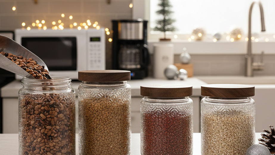 O primeiro passo para reorganizar a casa é guardar a decoração natalina de forma cuidadosa, garantindo que ela esteja em perfeito estado para o próximo ano. Use os potes de vidro Le Bianco para armazenar enfeites pequenos como bolas de Natal, laços e pequenos objetos decorativos. A transparência do vidro permite que você veja o conteúdo sem precisar abrir, facilitando a organização.